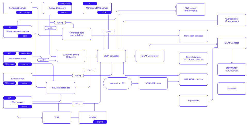 Так же события полученные от потоковых песочниц, которые проверяют файлы поступившие на почтовый сервер, можно направить в SIEM-систему, если песочница работает в режим мониторинга без блокировки.