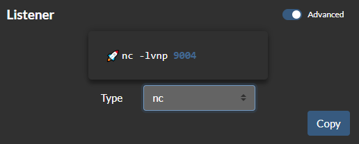 В разделе Listener генерируется команда, которую нужно исполнить на нашей системе для получения обратного соединения. Здесь можно выбрать приложение, установленное на нашей системе.